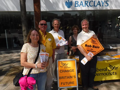 Liberal Democrats in Warrington have been out in the centre of town with Cllr Bob Barr, the Parliamentary Candidate for Warrington South, listening to what people think are the big issues. They held a Street Stall at Market Gate on Saturday.